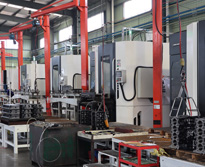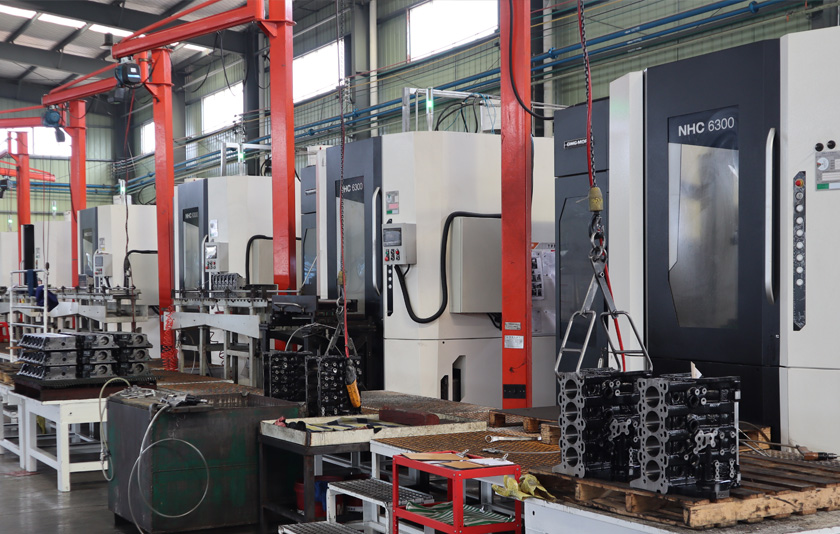 國(guó)六生產(chǎn)線主要以德馬吉森精機(jī)、馬扎克等國(guó)際一流品牌的臥式加工中心、國(guó)內(nèi)先進(jìn)的組合機(jī)床及輔助配套設(shè)備組成的高端、智能制造裝備的柔性生產(chǎn)線。